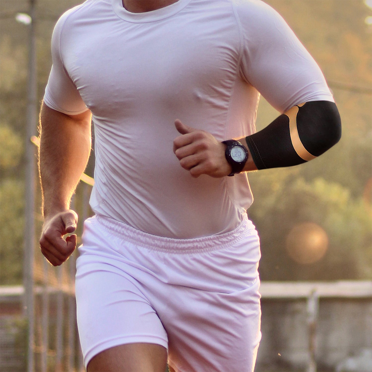 Don't let old sports injuries keep you in the stands, get back on the court with the support of this high-performance copper-infused compression elbow sleeve. It will help with rehabilitation and keep you from re-injury. Unleash the power of performance with this must-have Copper Compression Elbow Sleeve.